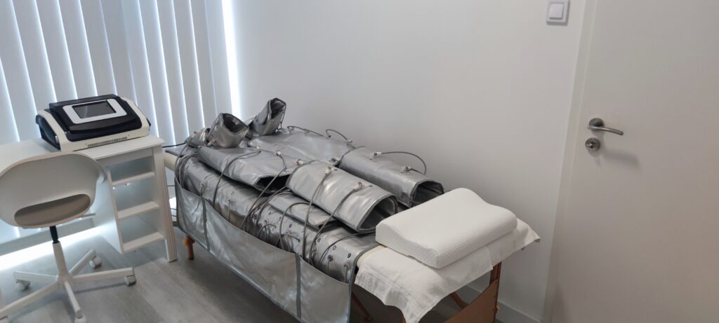 Pneumatikus masszázs: A kezelési eljárás során a gép levegőt pumpál a speciális, felfújható kamrákba, melyek ritmikusan felfújódnak és leeresztenek. Ez a ritmikus nyomás segíti a nyirok és a vér szív felé történő áramlását, ezáltal javítva a nyirokkeringést és a vérkeringést.
